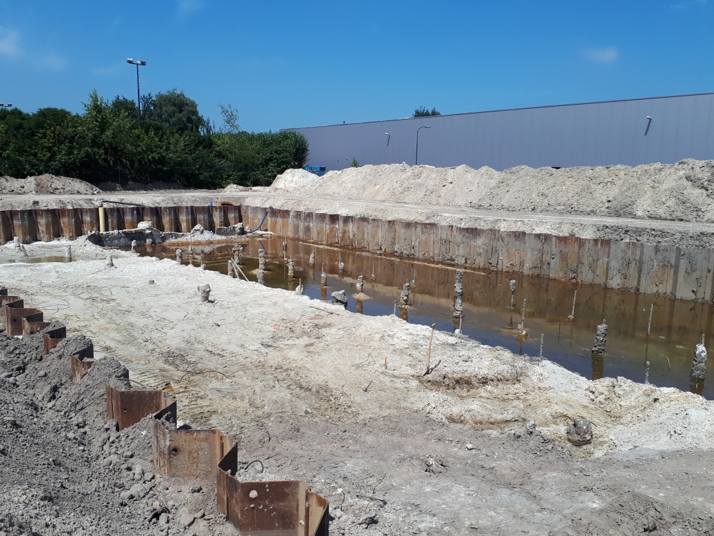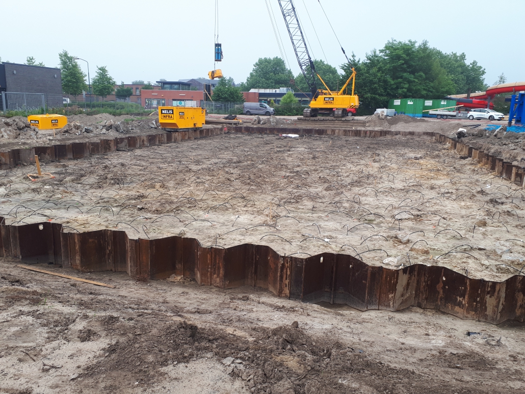 Daarom kreeg Parcum van KWS (onderdeel van Volker Wessels) de opdracht een complete bouwkuip met damwanden en een waterremmende laag te realiseren. Met een laag debiet aan bemalingswater kunnen de medewerkers van Bouwbedrijf Vaessen veilig hun werk doen.